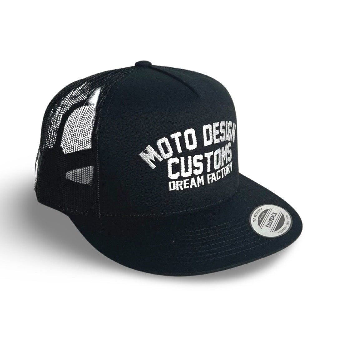 La parte frontale presenta il Nostro Marchio "Moto Design Customs" in colorazione grigia, mentre la parte posteriore è realizzata in rete per una maggiore ventilazione.