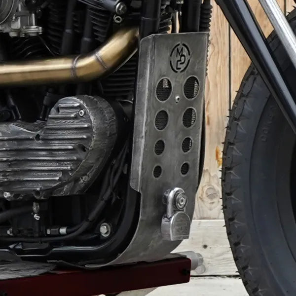 Il parasassi compatibile con i modelli Sportster dal 1990 al 2003 è un componente artigianale di alta qualità, realizzato interamente in alluminio ricavato dal pieno per garantire resistenza e leggerezza. Progettato specificamente per adattarsi perfettamente alle caratteristiche tecniche delle moto Sportster, offre una protezione efficace contro gli urti e i detriti durante la guida. Disponibile in due finiture eleganti, nero e brunito, permette di personalizzare l’estetica della moto mantenendo un aspetto robusto e raffinato. Questo parasassi è ideale per chi cerca un accessorio durevole e funzionale, senza rinunciare a uno stile curato e professionale.