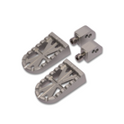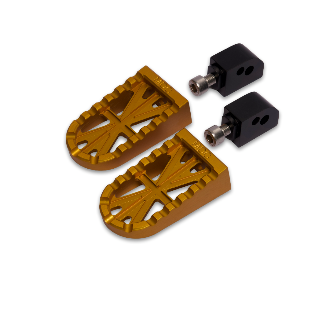 Questa coppia di pedalini posteriori, realizzati artigianalmente in alluminio CNC, si distingue per la precisione del taglio e il design ispirato alla classica bandiera inglese, simbolo di stile e tradizione britannica. Disponibili in tre eleganti colorazioni – nero, silver e gold – sono progettati per garantire una perfetta compatibilità con una vasta gamma di modelli Triumph dal 2016 in poi, tra cui Street Twin 900, Bonneville T120, Thruxton 1200 e Speed Twin 1200. Ogni set include supporti e bulloneria per un montaggio semplice e sicuro, offrendo un upgrade estetico e funzionale ideale per gli appassionati di moto che cercano qualità e autenticità.