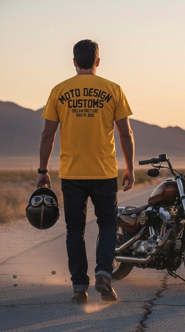 La T-Shirt Mdc Gialla è realizzata in cotone di alta qualità, garantendo comfort e traspirabilità durante tutto il giorno. Il design semplice con maniche corte e taglio classico si adatta perfettamente a qualsiasi tipo di corporatura, offrendo una vestibilità comoda e senza tempo. La piccola stampa con la scritta "Moto Design Customs" sul lato sinistro del petto e sul retro conferisce un tocco distintivo e riconoscibile, ideale per chi cerca uno stile sobrio ma originale. Il colore giallo vivace aggiunge energia e freschezza al guardaroba, rendendo questa t-shirt una scelta versatile per un look casual e contemporaneo. Perfetta per essere abbinata a jeans o pantaloni sportivi, è un capo essenziale per chi apprezza qualità e design minimalista.