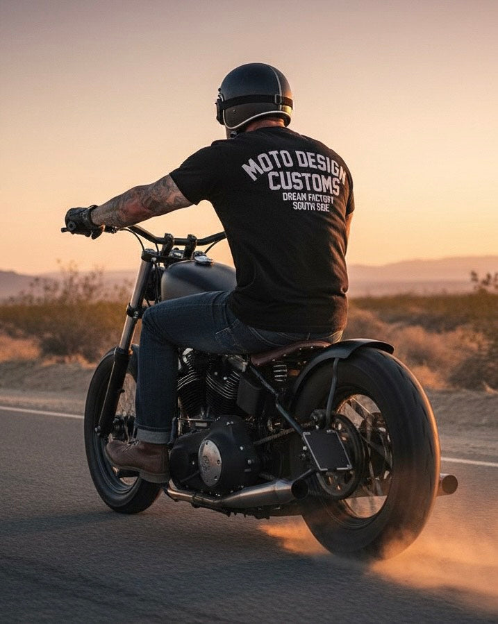 La T-Shirt Mdc Nera è realizzata in cotone di alta qualità, garantendo comfort e traspirabilità per tutto il giorno. Il design semplice con maniche corte e taglio classico la rende adatta a qualsiasi tipo di corporatura e stile. Sul lato sinistro del petto e sul retro, una discreta stampa con la scritta Moto Design Customs conferisce un dettaglio distintivo senza rinunciare all’eleganza minimalista. Il colore nero, intramontabile e versatile, permette di abbinarla facilmente a diversi outfit, rendendola ideale per un look casual ma curato in ogni occasione.